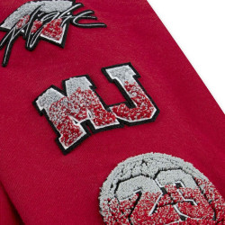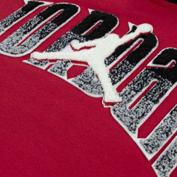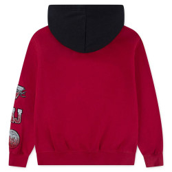 Felpa Jordan Faded Pixel da bambino bicolore in tessuto invernale di misto cotone e poliestere, con cappuccio a contrasto, maxi patch logo multicolor ricamato texturizzato frontale effetto microfibra, stampe gommate texturizzate faded pixel a tema basket lungo la manica lunga, polsini e orlo in maglia e tascone a marsupio.