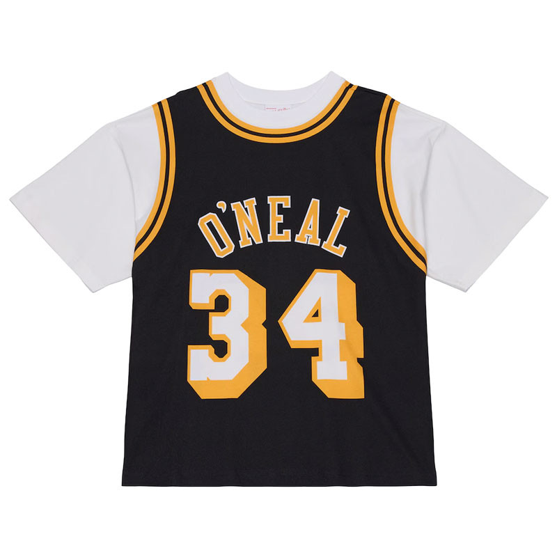 Nel corso della storia dell'NBA, alcuni giocatori si sono distinti come "i migliori della categoria". Rendi omaggio a una di queste leggende, Shaquille O'Neal, con questa t-shirt della stagione 1996-97. È realizzata con una grafica stampata che simula l'aspetto delle nostre Hardwood Classics indossate al contrario sopra una t-shirt bianca girocollo. Un'audace dimostrazione di passione, questo capo dei Los Angeles Lakers è un acquisto imprescindibile per ogni vero tifoso o appassionato di storia del basket.